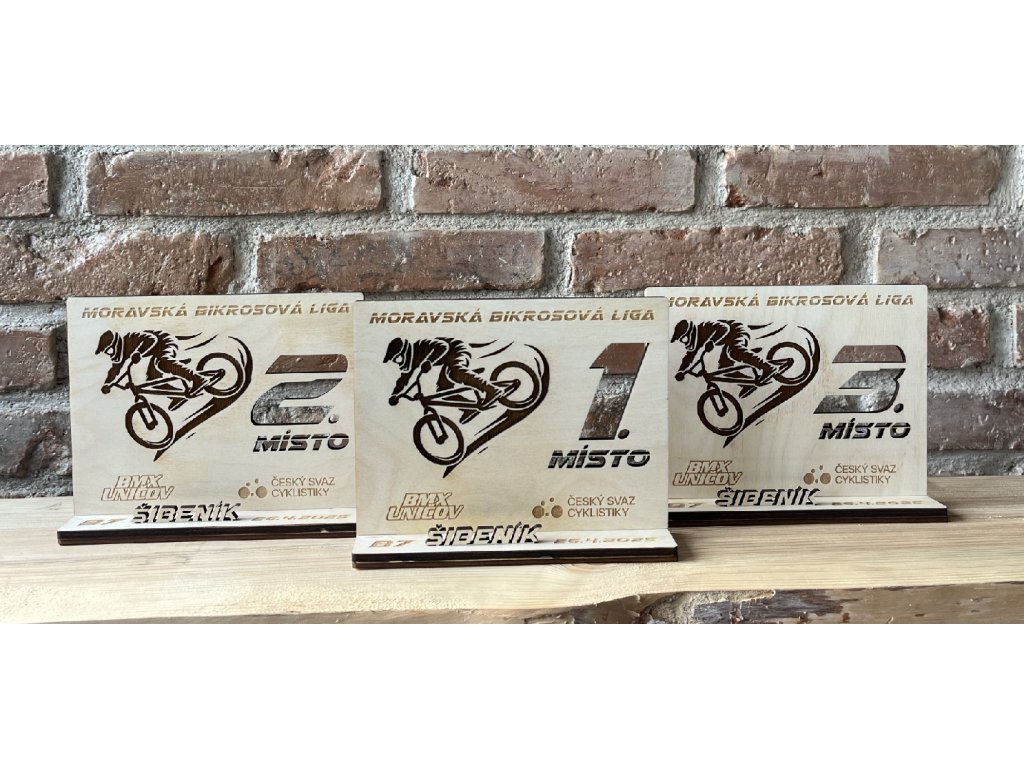 Využití: firemní ocenění a výročí, sportovní a školní ceremoniály, pamětní plakety na soutěže i kulturní akce. Pošli logo, text a množství – připravíme návrh a vyrobíme plakety, které budou vypadat skvěle na pódiu i na zdi.