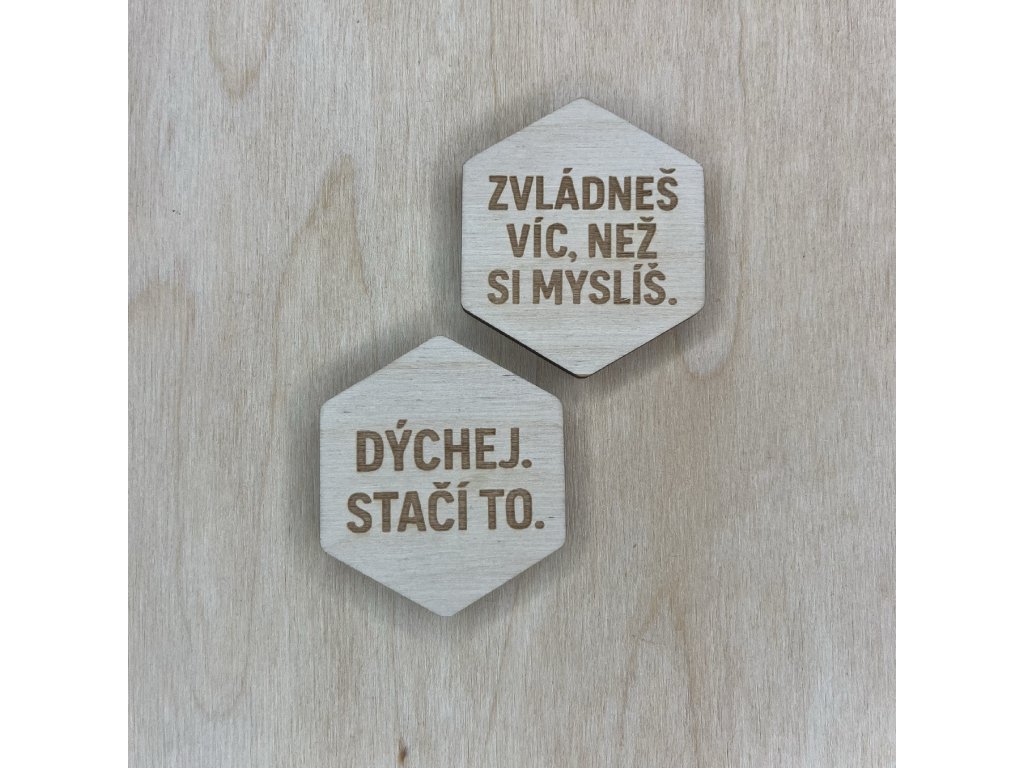 Dřevěná magnetka o průměru 6 cm vyrobená z kvalitní bukové překližky o tloušťce 5 mm. Do povrchu gravírujeme motivační citáty, vzkazy z lásky nebo osobní text na přání.