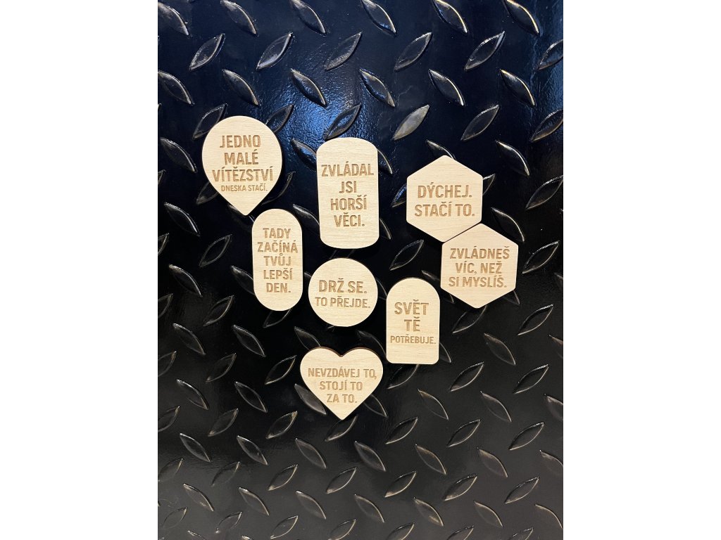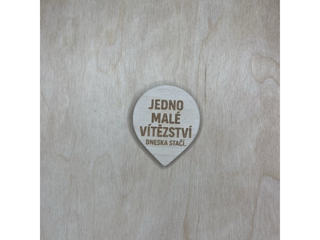 Dřevěná magnetka o průměru 6 cm vyrobená z kvalitní bukové překližky o tloušťce 5 mm. Do povrchu gravírujeme motivační citáty, vzkazy z lásky nebo osobní text na přání.
