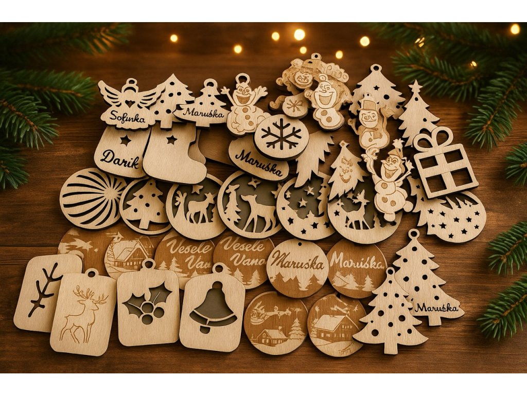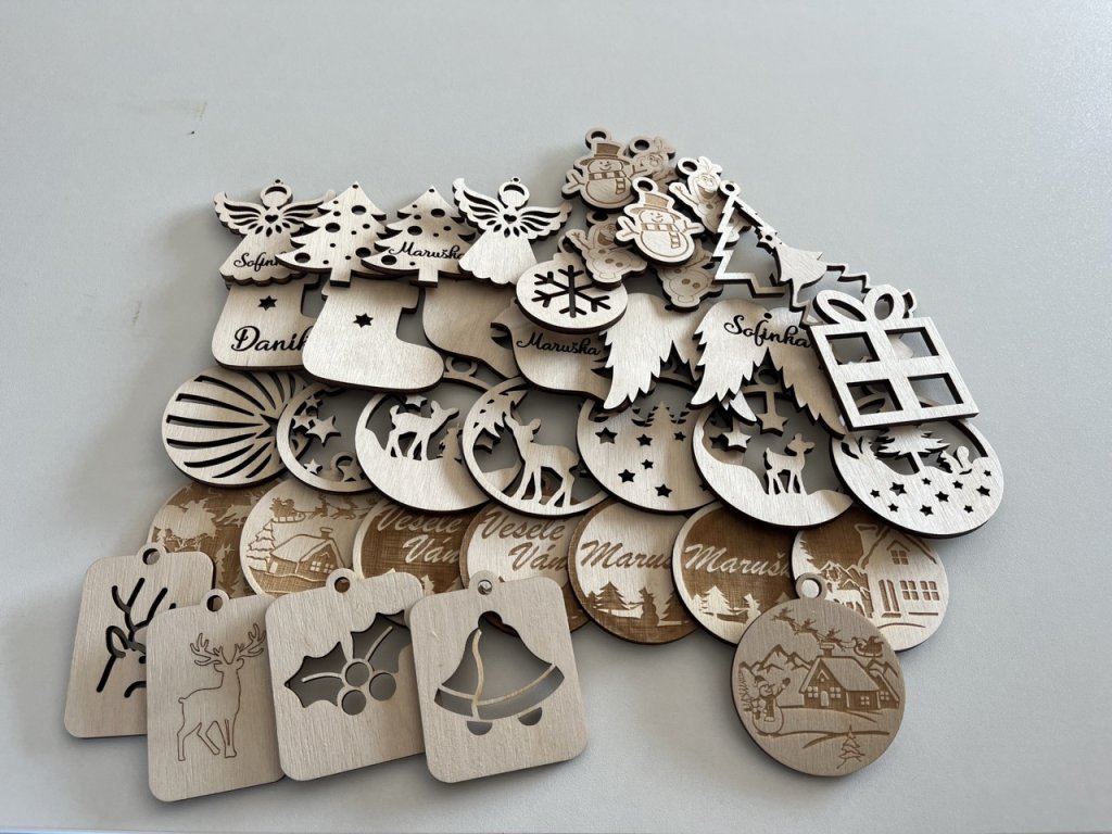 Každá ozdoba je originál. Můžete si vybrat z našich motivů nebo si nechat vytvořit vlastní ozdobu z fotografie – ideální jako dárek pro rodinu, partnery nebo kolegy. Gravírování zachytí i jemné detaily tváře či siluety a v kombinaci s přirozenou kresbou dřeva vytváří jedinečný výsledek, který má hloubku i duši.